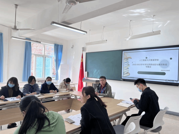 会上,各年级辅导员以数据分析、案例分享的方式汇报了本学期学院学生工作思路,结合开学后学生基本情况摸排、分类指导、校园安全、特殊学生“一对一”关注等重点工作对新学期学生思想动态进行了分析。学管办主任杨家腾结合2022-2023学年学生工作要点和各位辅导员汇报内容,就进一步加强意识形态工作和正面舆论引导工作,加强民族团结进步创建,加强学生安全教育与平安校园建设等内容提出了工作要求。学院团总支书记王珊结合2022-2023学年学校共青团重点工作,对新学期学生团务工作进行了梳理。