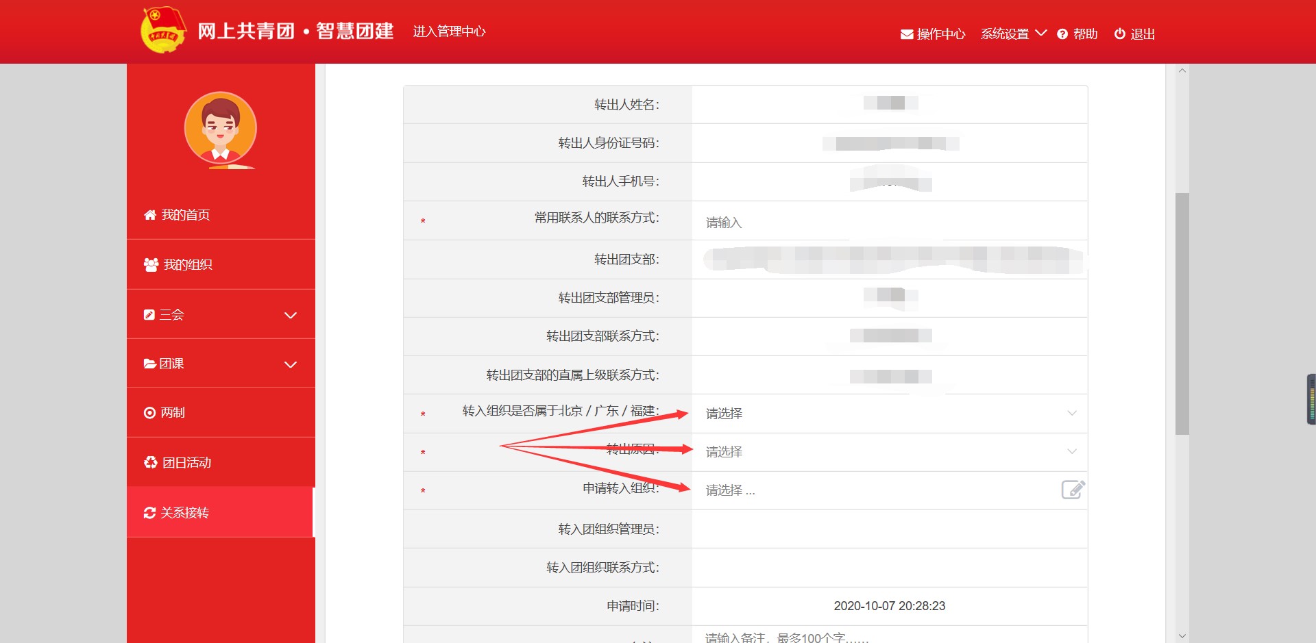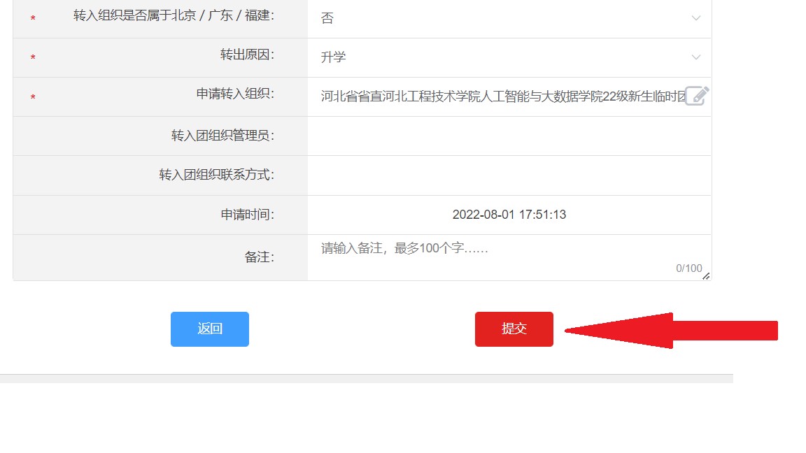 申请转入组织--团河北省委--省直团工委--betway西汉姆联官网团委—2022betway西汉姆联官网新生(专接本)临时团支部。然后填写资料,带* 为必填项。