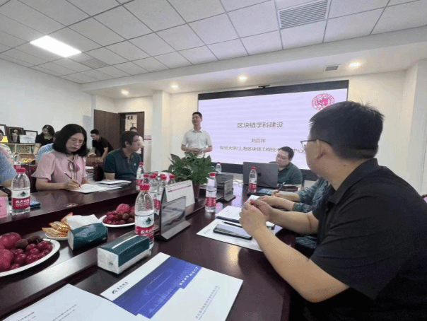 第二项:刘百祥教授分享区块链学科建设的创新思路。刘百祥教授作为上海市区块链工程技术研究中心首席技术专家,上海市区块链技术测试认证公共服务平台副主任,中国计算机学会区块链专委会委员,对区块链系统底层技术和产业应用模式有深入研究。区块链技术的系统性科学性和客观性对学科建设评价的价值判断及模型构建,尤其对解决理想模型转化为现实应用的关键问题等能提供创新视角、创新技术和创新价值。