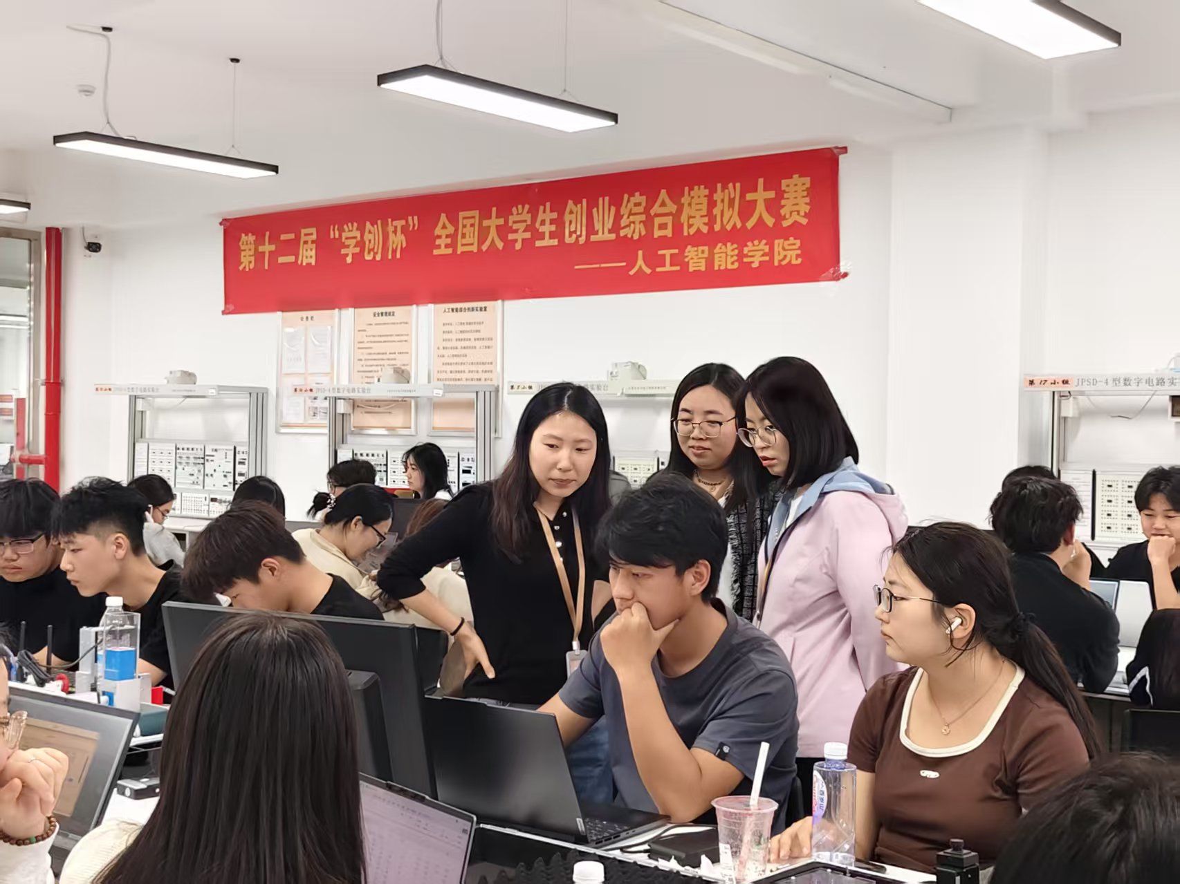 为了培养学生的创新思维和创业能力,激发同学们的创业热情,培养学生的团队协作精神和沟通能力,betway官网于2025年4月15日14:30在实训楼404开展“学创杯”全国大学生创业综合模拟大赛决赛活动,共同打造了一场精彩纷呈的创业模拟赛事。学院党总支书记、学管副院长尹钧、院招生就业办公室主任潘亚静及辅导员老师们亲临现场指导。