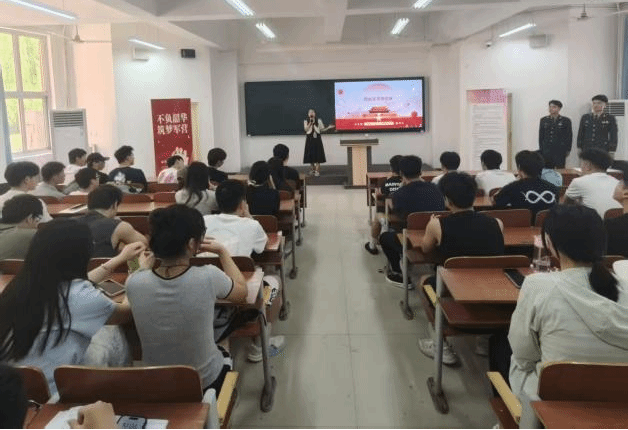 在政策解读环节,另一位退伍士兵围绕退役士兵在学业、就业、经济补助等方面的优惠政策进行了详细讲解。同时,还对 2025 年下半年征兵的报名条件、流程及时间节点进行了重点说明,确保同学们对政策和流程清晰明了。