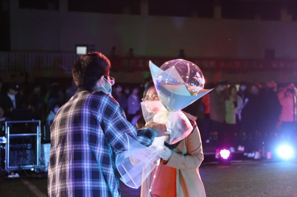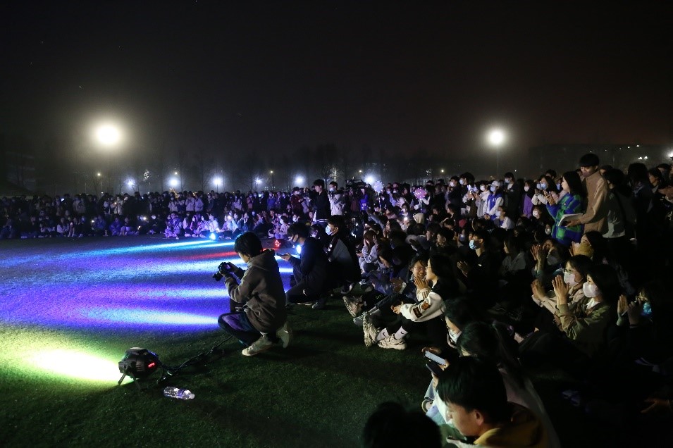 绚丽的晚霞已昭示着今晚的不平凡。沉睡了两周的校园,在今晚活跃起来了。今晚,在灯光绚丽之下,我们的人情与笑声洒满校园的每个角落。