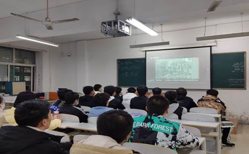 图4.学生们认真观看班会主题视频