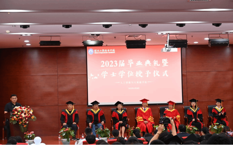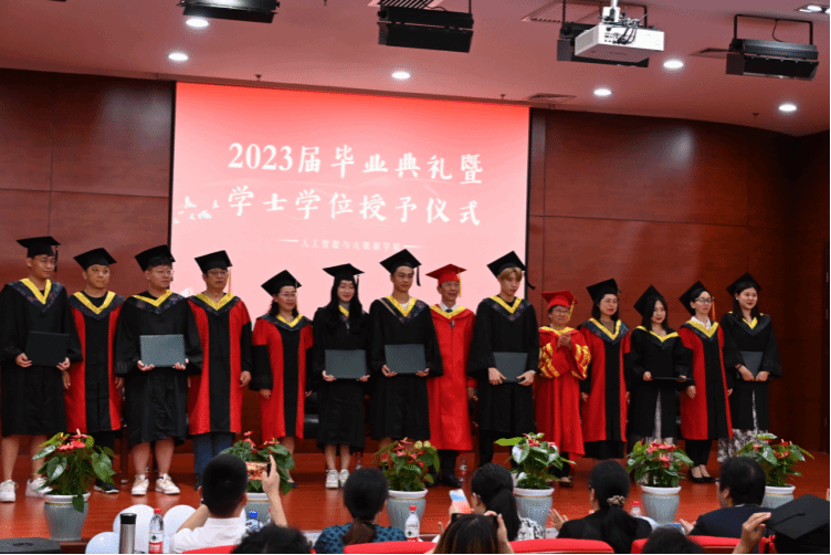 毕业生代表任子涵发言,回顾了自己在数智学院的宝贵学习经历,表达了将在新的人生阶段拼搏进取的坚定信心。她表示,无论是继续深造,还是扎根基层努力工作,毕业生们都将传承“修德凝道”校训精神,在青春的赛道上奋力奔跑,在全面建设社会主义现代化国家的火热实践中绽放属于河工数智青年的光彩。