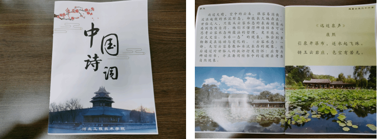 团队成员来到了兴隆县车河梁村,在这里我们为村里的孩子们讲述了中华的诗词,向他们宣传中华传统文化,增强文化自信。在宣讲之前我们利用自己的专业知识和艺术技巧,将农村地区的历史、传统和承德历史中出现的诗词制作成“诗词册”,方便学生们学习。