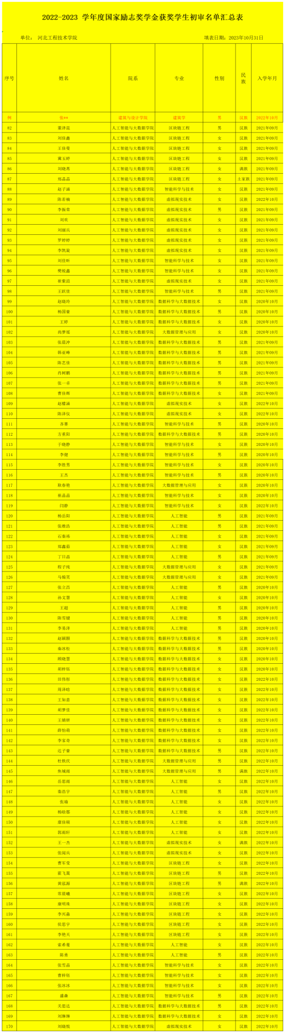 根据《河北省教育厅、河北省财政厅关于印发〈关于印发河北省普通本科高校、高等职业院校国家励志奖学金、国家助学金实施细则以及学生勤工助学管理办法〉的通知》,经评审,betway官网共89名学生获得2022-2023学年国家励志奖学金。现将获奖名单予以公布。
