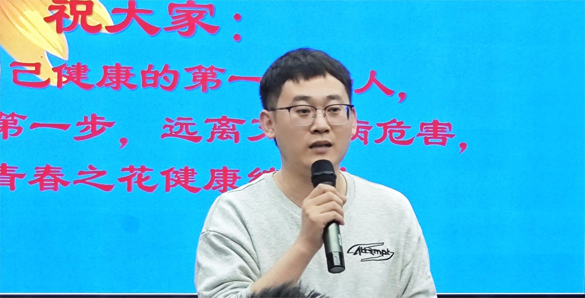 随后,刘淑君老师向学生们提出了预防性传播、预防血液传播、预防母婴传播这三大预防原则,介绍了由于艾滋病本身所带给身体的危害以及由此所对于家庭社会的危害,要求学生们要避免多性接触、远离毒品等安全自卫意识。刘淑君老师强调了艾滋病虽然很可怕,但也不至于恐慌,在生活中与艾滋病患者共同进餐、握手等日常的接触并不会产生感染。以及如果产生不可控的接触之后,会有两个小时内的黄金急救措施时间以及七十二小时的极限期限。