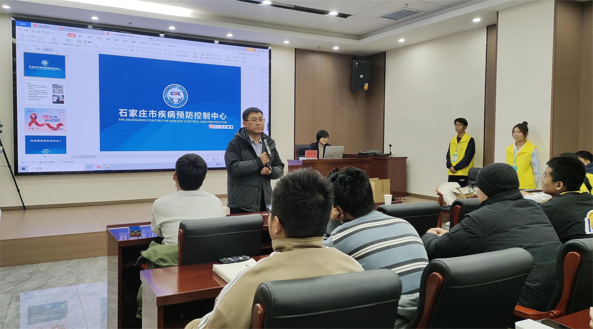 2023年11月29日下午,betway西汉姆联官网在图书馆第一会议室开展了“凝聚社会力量,合力共抗艾滋”讲座,本次讲座特邀石家庄市疾控中心疾控性艾所副所长刘淑君、石家庄疾控中心同行工作组贾策主任讲解,由betway官网学管副院长尹钧主持,参与人员有betway西汉姆联官网辅导员代表,2023级各班学生代表。