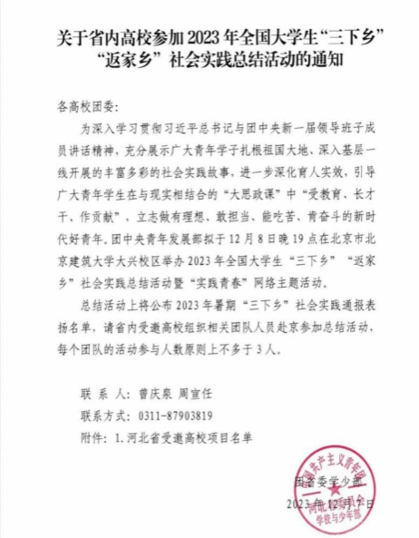 2023年12月8日betway西汉姆联官网“听党话,跟党走”实践团队受共青团中央邀请赴京参加2023年全国大学生“三下乡”“返家乡”社会实践总结暨“实践青春”主题分享活动。
