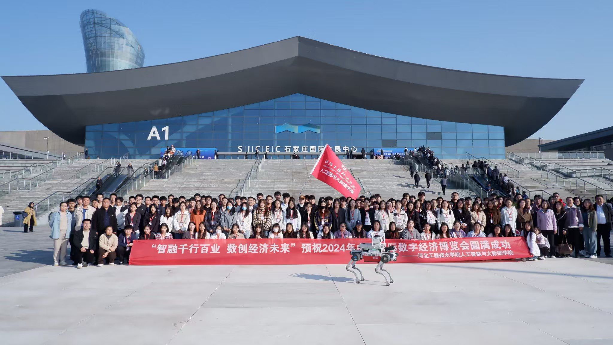 清晨,学生们准时集合,迅速在老师的带领下登上了前往正定的大巴。车内,学生们满怀期待,或交流分享,或静观窗外,心中勾勒着即将展开的科技蓝图。历经一个多小时的平稳行驶,车队顺利抵达石家庄(正定)国际会展中心。在老师的周密组织下,学生们首先踏入了一号主题展馆。此展馆聚焦于河北省在多个关键领域的人工智能应用成果,通过一系列垂类大模型应用实例的展示,生动诠释了人工智能技术在推动产业发展中的广泛影响与深远意义,为学生们提供了一次直观感受科技变革力量的宝贵机会。