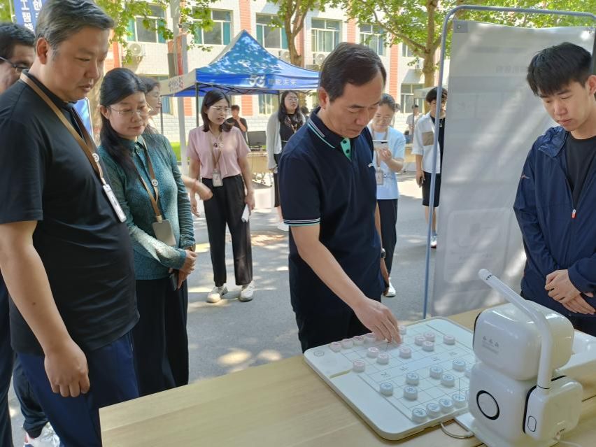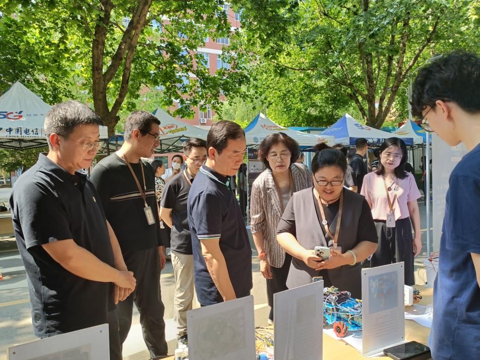展会现场亮点纷呈:宇树人形机器人挥手问好、体验与象棋对弈机器人博弈、和智能虚拟人对话,让师生近距离感受人工智能的魅力;学生团队的智能车系列作品彰显专业功底与实践能力;VR全景校园、VR红色骑行等项目,为观众带来了最具特色的沉浸式互动体验。此外,物联网工程专业展出的技术作品,生动体现了学生的知识转化能力。