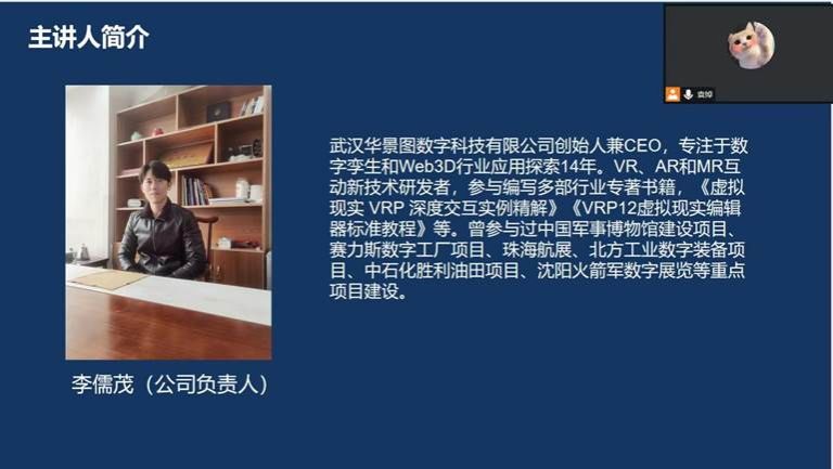 本次会议,李儒茂专家主要从“虚拟现实技术应用概况”、“华景图公司介绍”以及“经典案例解析”三方面展开讲解。在此过程中还讲述了自己的创业经历及虚拟现实技术行业发展现状,分享了自己有关虚拟现实技术的学习经验,并鼓励学生们要努力钻研,积极进取,保持对专业的信心和热爱。除了专业知识的分享,李儒茂专家还帮助学生们展望未来,告诉学生们在学习专业知识的同时要不忘初心,坚守初心,未来的道路才能越走越宽,越走越好。