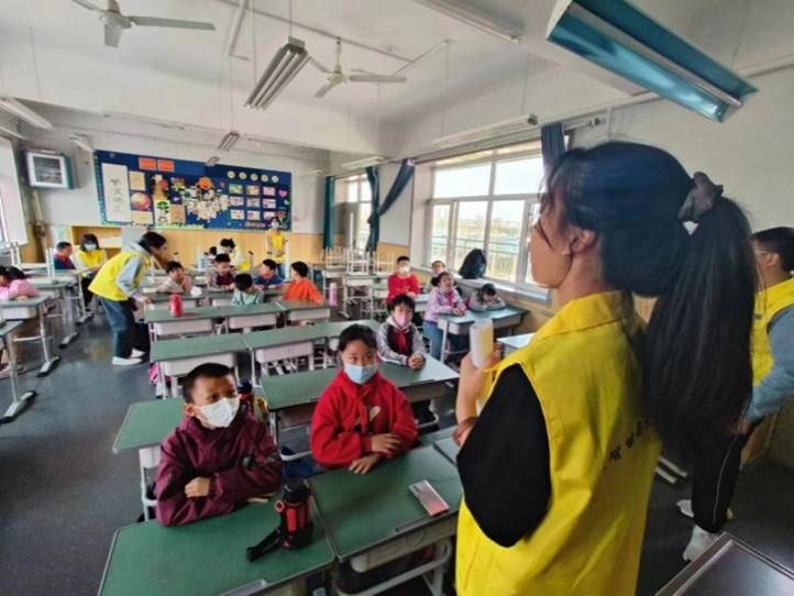 其次,进行第一期志愿服务活动。志愿者们根据李校长的引导,“童话成语大碰撞”成语课堂、健美操小课堂和垃圾分类“变废为宝”手工小课堂的三组志愿者们分别前往不同的地点进行多彩公益课堂教学活动。课堂上,志愿者们生动有趣的授课内容,使得每间教室都充满了欢声笑语,孩子们在接受知识的同时收获了快乐,课堂最后在孩子和志愿者们的热情互动中,本期“三点半公益课堂”活动圆满完成。