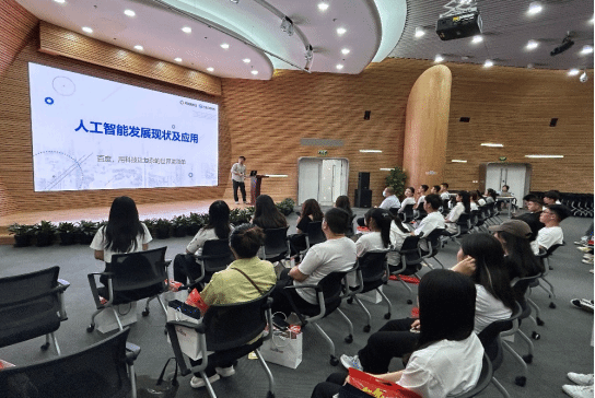 学生们在片刻休息后,百度公司针对自己所开发的前端技术进行了关于“人工智能发展及现状”的大讲堂。在讲解的过程中,学生、老师和工程师之间进行了深刻讨论,学生们积极提问,工程师为我们一一解答,并激励我们深度钻研区块链工程专业。通过老师、学生与工程师的问答,学生们了解到了百度公司对区块链工程专业的重视,和对区块链专业毕业生的能力要求,同时也认识到了区块链技术与人工智能联动的重要性和广阔前景。
