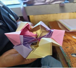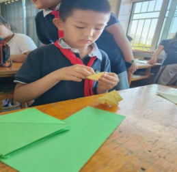 本期手工课堂的主题是“彩虹无限翻”。课堂期间,小朋友们个个神情专注的听老师讲解,跟着老师一步一步学习,谁也不甘示弱,大家沉醉在手工折纸的世界里,经过自己的努力,一张张彩色的纸片在他们的小手里变的更有创意,手工课堂不仅培养了他们手、眼、脑协调并用的能力,还使小朋友们体验到互相帮助的快乐、创作完成的喜悦,志愿者老师和小朋友们在轻松愉悦的氛围中交流,提高了学生的专注度,增进了彼此之间的友谊。