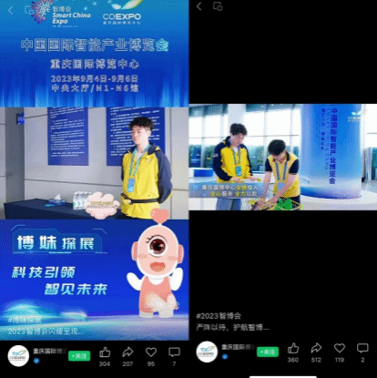王安石曾在《题张司业诗》中写道:“看似寻常最奇崛,成如容易却艰辛。”我在智博会的工作亦是如此,智博会开展的背后,是每个工作人员的辛勤付出,是每个志愿者辛勤汗水的浇筑。本次智博会我作为宣传组的一员,捕捉记录下志愿者服务的精彩瞬间。我每天穿梭于各大场馆,结识了许多朋友。