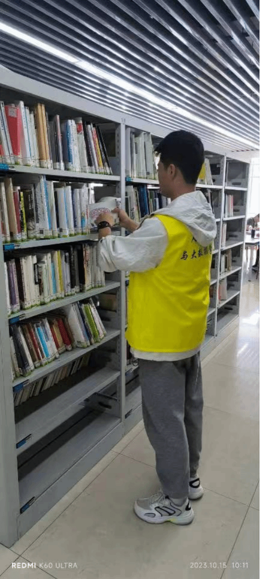 书籍是带领我们从浅狭的海湾驶向无垠的大海的一条小船;书籍是打开成功之门的一把金钥匙;书籍还是人类进步的阶梯。志愿者们通过熟悉图书馆索书号的排架方式,按工作流程整理图书馆。在图书馆志愿活动中,志愿者们的辛苦工作也为人们借阅图书带来了便利,也为人们创造了一个更好的学习环境,同时图书馆工作人员繁重的工作任务也得到了减轻,充分展现了志愿者无私的志愿服务精神。