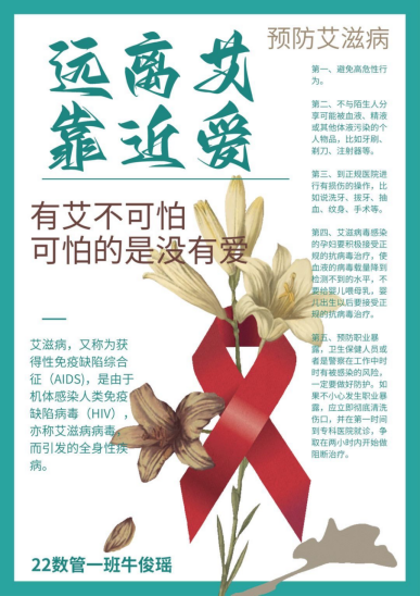 2022年,我国世界艾滋病日宣传活动主题为“共抗艾滋 共享健康”。强调每个人都参与进来,携手应对艾滋病流行带来的风险与挑战,倡导全社会共建共治共享。为了宣传防艾知识、提高学生自我保护意识,全面做好防艾工作,同时为了确保广大学生的健康与安全,倡导积极向上的青春理念和文明健康的生活方式,促进学生身心健康发展,关爱和帮助受艾滋病影响的人群,营造零歧视的校园氛围,betway西汉姆联官网学生联合会举办“防艾不防爱”海报设计活动。