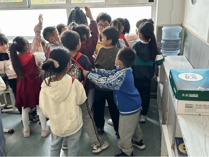 放学后,志愿者帮助孩子们收拾书包,整理教室