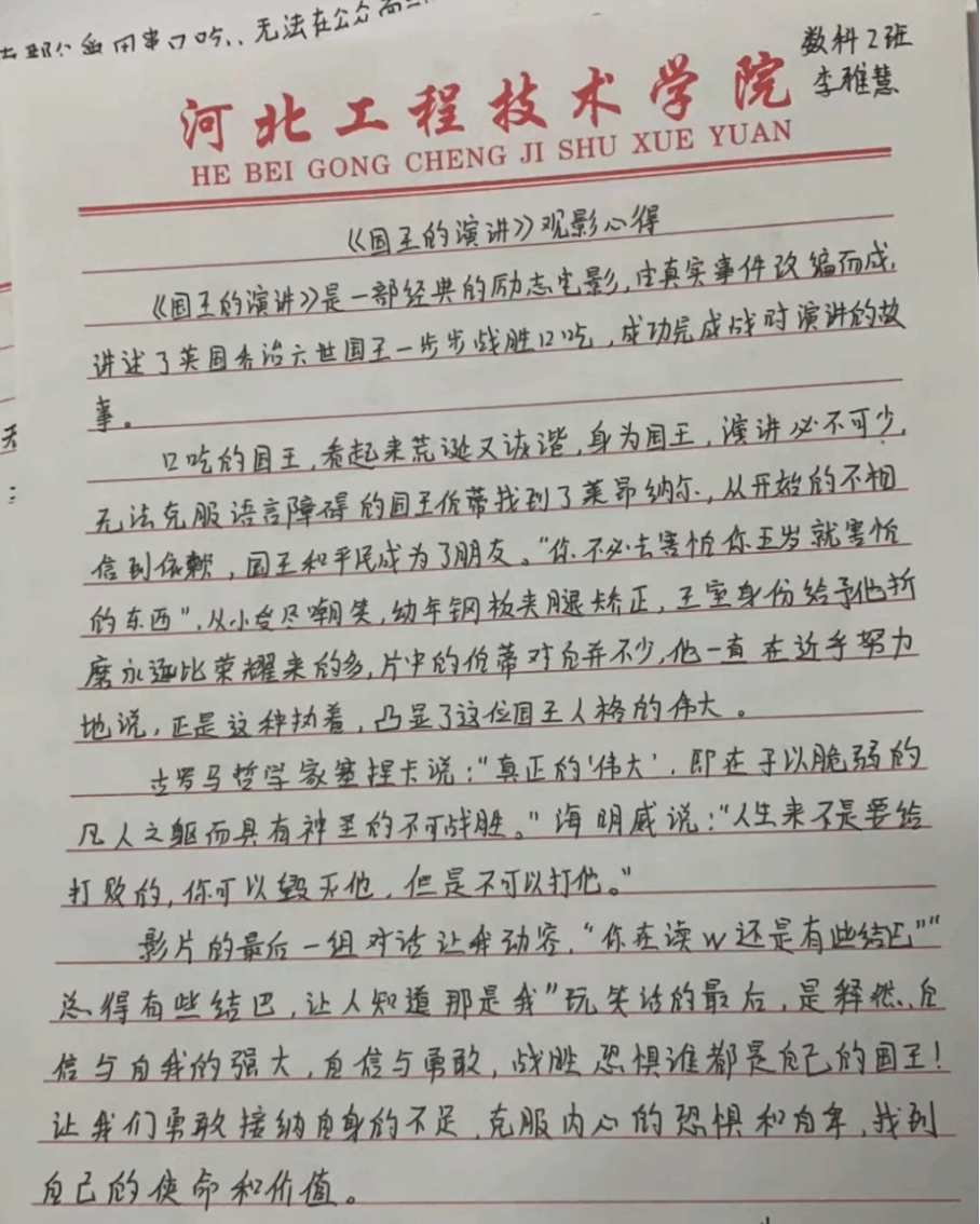 在此次观影活动中,学生们不仅享受到电影带来的愉悦,还从中汲取到前进的动力。国王最终能成功加冕,是他坚定自己的声音值得被听到,愿学生们也能像国王一样直面自己的弱点,熬过黑暗,迎接崭新的未来。