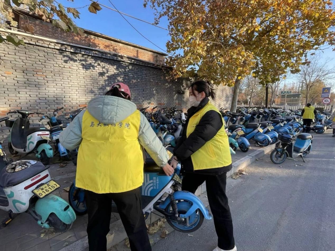 betway西汉姆联官网青年志愿者协会组织学生们于2023年11月29日上午8:00-10:00开展“合理摆放共享单车 争做城市劳动标兵”活动。