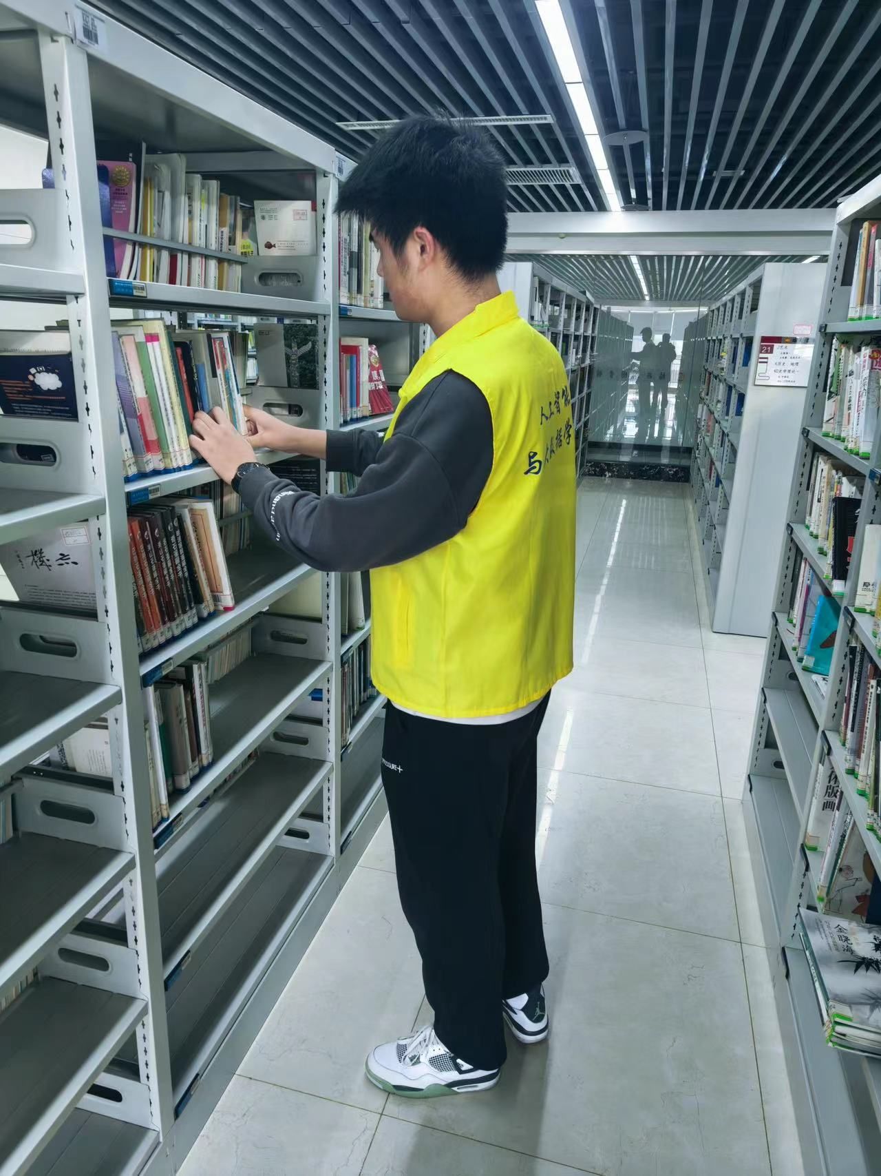 沉浸书香,除尘拾墨。由10名学生组成的志愿小组在桥西区图书馆协助图书馆工作人员进行书刊整理、分类、引导读者借阅书籍等工作。志愿者们先是将读者归还的图书按书上贴有的编码放到图书架上,再逐个图书架进行整理,分工合作,认真而有耐心的完成任务。活动过程中,志愿者们团结互助,齐心协力,从刚开始的不熟悉,到后面的有条不紊,他们默默付出,为读者营造舒适安静、文明有序的阅读环境。