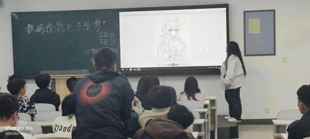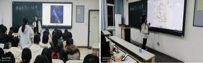 活动当天,学生们准时到达106教室,同时,由工作人员开始在电脑上展示学生们的参赛作品,并让每一位学生讲述自己的制图过程以及灵感来源。随着展示的作品越来越多,学生们更加惊叹于科技的发达以及天马行空的想象力,电子绘画不仅方便学生们构造自己心之所想,活跃思维,也进一步激发了学生们对人工智能领域的兴趣。