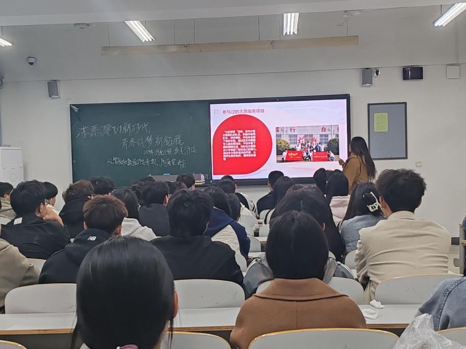 活动开始,主讲人王浩将本次演讲分为五个部分。在演讲开始前,主讲人阐述了志愿者的定义,并提到志愿者在公益活动中扮演着十分重要的角色,由此引出第一部分“为何成为志愿者”,并为学生们指出志愿服务的意义。随后主讲人分享了自己的志愿服务经历,从扶助贫困地区居民到服务社区居民,从植树造林到组织垃圾清理,由远及近,从小到大,丰富的志愿经历使自身得到了许多锻炼。其中尤为重要的是主讲人讲述帮助留守儿童的故事,她为受伤的小女孩涂碘伏,观察到自闭症男孩喜欢叠千纸鹤等等,字里行间流露出真情实感,主讲人说“她从不后悔挤出时间去做志愿服务,在时间的消磨中,他人的微笑便是给予自身最大的动力”。第三部分,主讲人提到了自己在志愿服务中的成长与收获,指出志愿服务的价值,并提出“志愿服务不仅是一种奉献更是一种学习和成长的机会”。