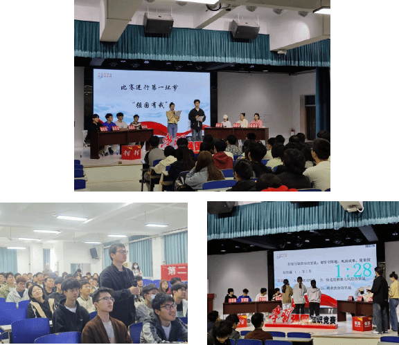 第二轮为限时答题,各队伍踊跃答题,这不仅仅是反应力的比拼,更是思维敏捷力和知识储备的考验。每支队伍都不甘示弱,努力拉开分差,场上比分你追我赶,赢得了台下阵阵掌声。到第三环节,由前一队选手为下一队抽取答题文件,每个文件的题目数量与难度均不一致,并且有直接加分的惊喜礼包。随着主持人的一句开始答题,参赛选手们立刻开始“沉浸式”答题,不断将分数收入囊中,展现出团结协作的精神风貌。最后一个环节则为“一站到底”模式,每支队伍的选手们依次上台进行PK,一号队伍的参赛选手们凭借丰富的知识储备,站到了最后一轮,并将冠军收入囊中。