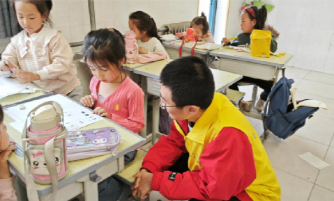 活动过程中,志愿者们在不同的教室中充当起了老师的角色,维持课堂纪律,监督学生学习,保证了活动的质量,为公益教学得以顺利进行提供了重要保障。不止如此,志愿者们还负责辅导小学生们当堂的作业,帮助学生们高效率完成。