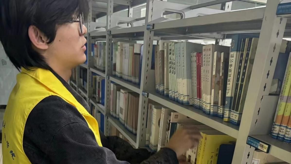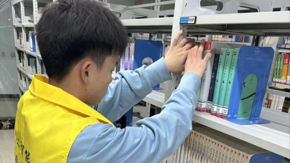活动当天,志愿者们早早抵达桥西区图书馆集合,在工作人员的带领安排下,迅速地投入到各自的工作岗位。志愿者们分工明晰,两两组队,一队负责将读者归还的书籍摆放回原位,另一对负责整理书架上无序的书籍。志愿者们穿梭在书架之间,一遍又一遍地检查、确认,只为给读者们提供更便捷的借阅服务。
