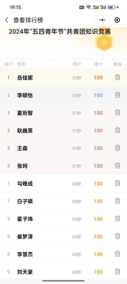 本次五四青年团共青团知识线上竞赛活动圆满成功,不仅提高了青年团员的思想政治素质,也增强了团组织的凝聚力和向心力。在今后的工作中,人工智能与大数据团务部也将继续举办更多类似的活动,为青年团员提供学习和交流平台。同时,希望广大团员以及各位同学能够积极参与团组织的各项活动,共同为团组织的建设和发展贡献自己的力量。