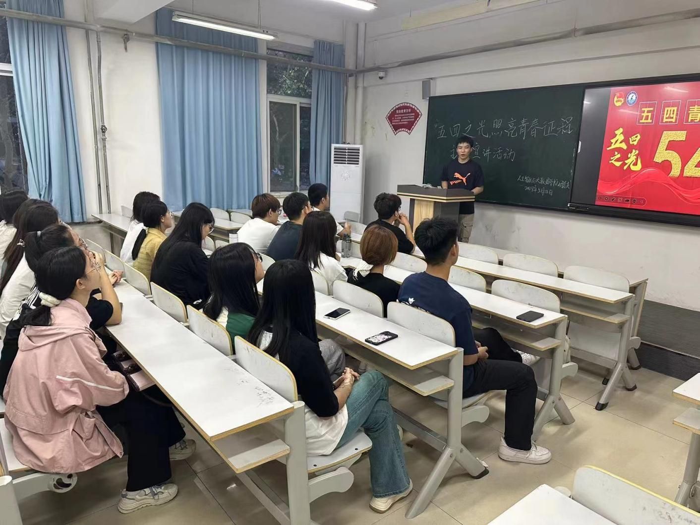 betway西汉姆联官网团务部于5月28日在主教102开展了“五四之光,照亮青春征程”主题宣讲活动。大数据部落学生社团副主席武昀昊为本次活动的主讲人,以自身丰富的参赛经历,向学生们传授了学术竞赛的挑战与成长经验。