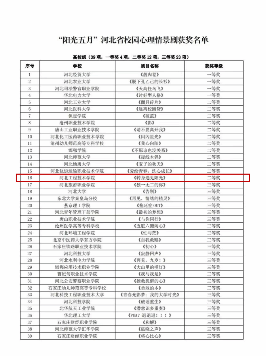 betway西汉姆联官网心理健康协会根据学校关于“5·25心理健康月”相关文件精神,由betway官网精心打造的校园心理情景剧《转身遇见阳光》荣获省级二等奖。此次获奖不仅彰显了betway官网在人才培养方面的卓越成果,更丰富了betway官网心理健康教育实践的形式,营造了积极向上、和谐健康的心理健康氛围。