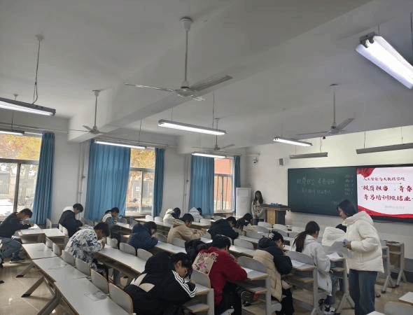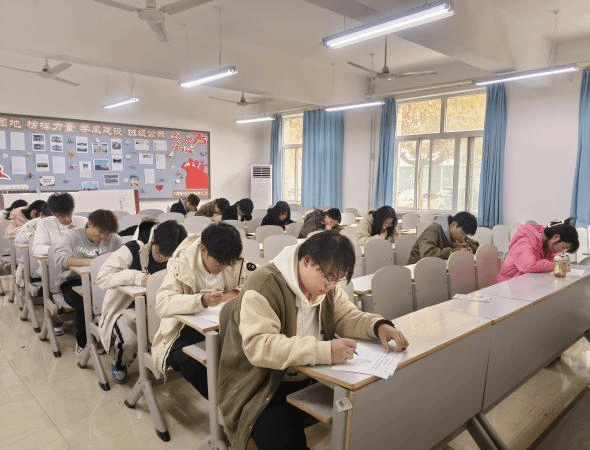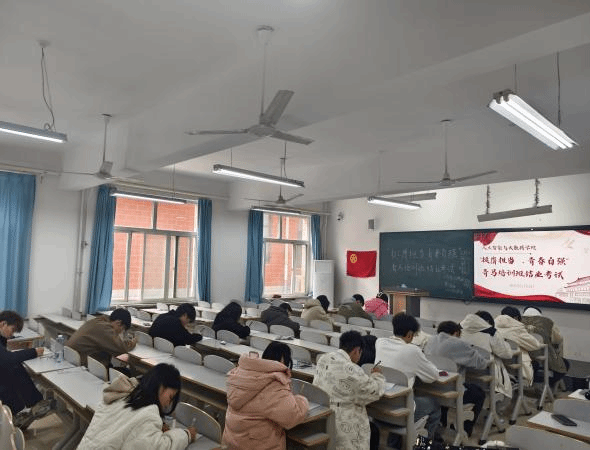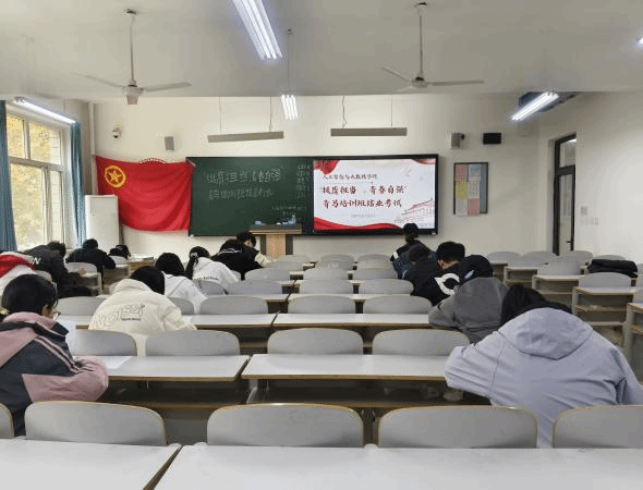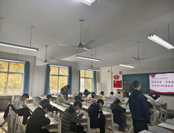 考试期间,教室里弥漫着紧张而严肃的气氛。学员们都沉浸在答题之中,他们坐姿端正,眼神专注,手中的笔不停地在试卷上书写。每一位学员都全力以赴,认真作答,不仅展现出他们在青马培训期间扎实学习的成果,更彰显出学员们对此次结业考试的重视。