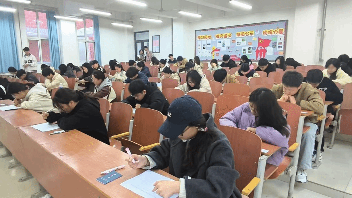 拟推荐发展对象结业考核全面而深入地覆盖了所有学习要点,实现了对知识的综合考量。考试在学生代表的协助下有序进行,考场纪律严明,氛围安静。学生们专注作答,展现了对党组织的热切向往。监考人员严格履责,确保考试公平公正。