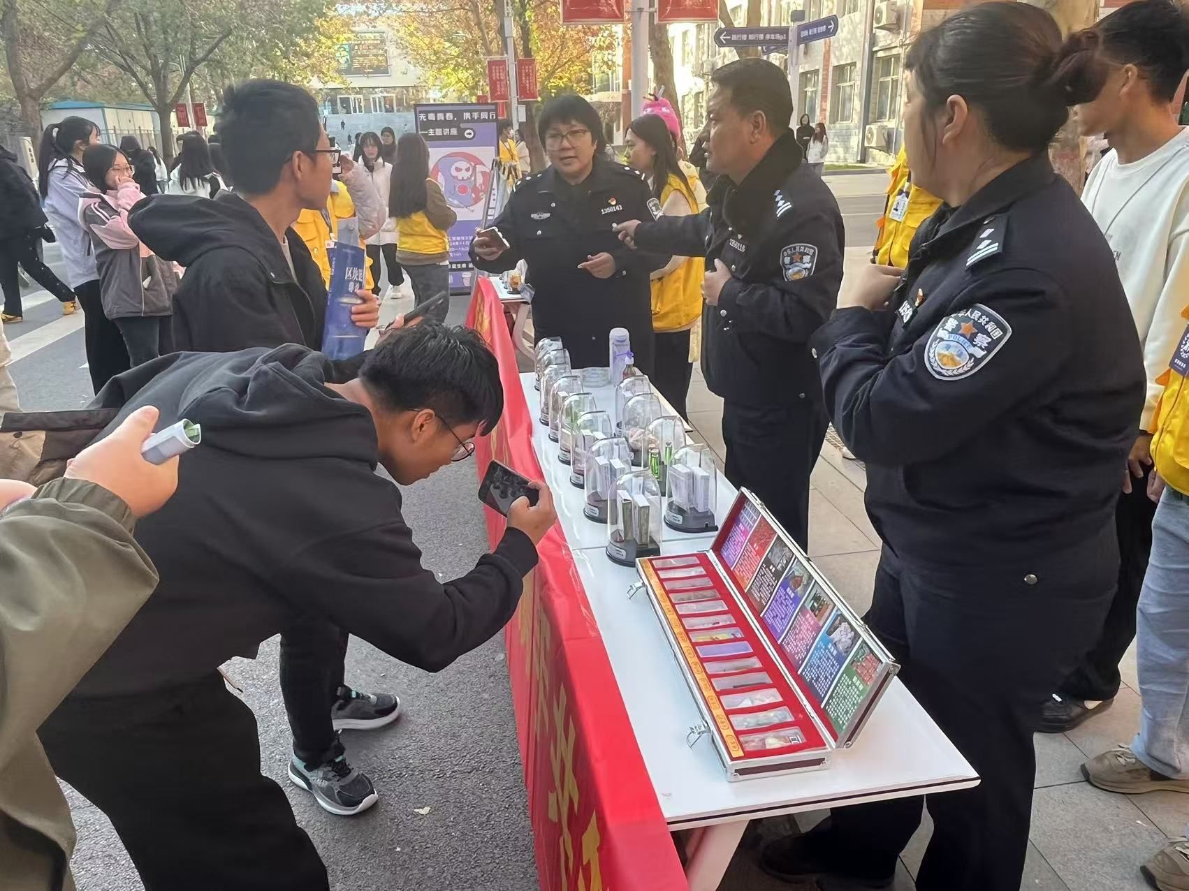 缉毒警官凭借着丰富的专业知识和实战经验,深入浅出地讲解了毒品的种类、成瘾机制以及对个人身心健康和社会稳定的严重危害,并教导学生们如何正确防范、抵制和远离毒品。随后的问答抢答环节更是将活动氛围推向高潮,学生们踊跃参与,在抢答中强化了所学的知识,也让严肃的禁毒主题多了一份活泼与欢乐。在讲座的知识洗礼之后,缉毒警官带领着学生们前往参观仿真毒品,参观过程中,工作人员发放了宣传册,进一步加深学生们对毒品知识的理解。