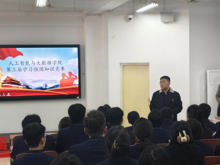 竞赛开场之前,尹钧院长目光炯炯地看着台下的学生们说道:“同学们,‘学习强国’不只是个 APP,更是一座知识富矿。这次竞赛是检验大家知识积累的契机,希望你们把赛场当战场,赛出风采、赛出水平,在知识交锋中夯实根基,让学习成为习惯,为自己学业添砖加瓦。”随着尹院长话语声落,比赛正式拉开帷幕。