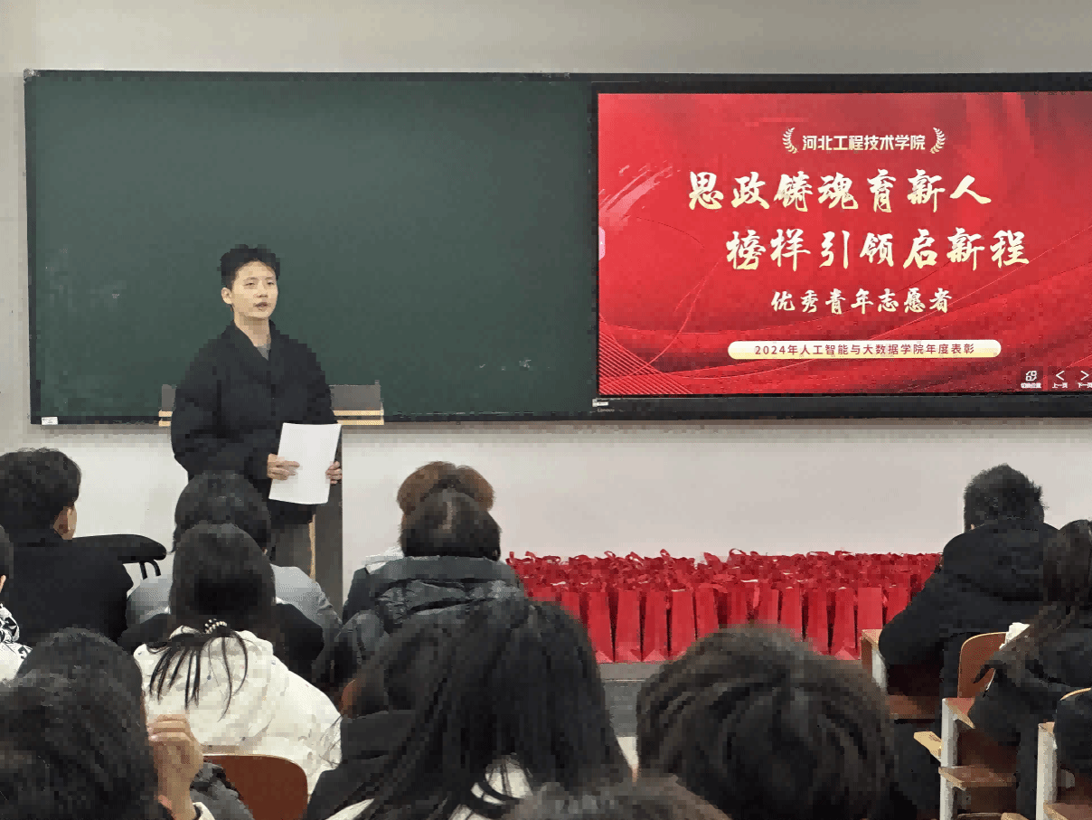 随后,林长昊宣读了受表彰的积极志愿者名单。这些志愿者们来自不同的班级和专业,但他们都怀着一颗热忱的心,积极投身于志愿服务事业。他们活跃在不同的公益岗位上,在红旗大街小学耐心辅导作业,助力小学生学业进步;在图书馆精心整理书籍、引导读者查找,让知识传递更加顺畅;在汇宁小学开展第二课堂,折纸、户外活动、科普小知识,拓宽孩子们的视野,点燃他们对未来的向往,用点滴行动诠释公益的力量。