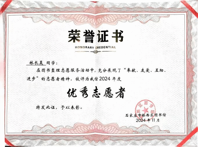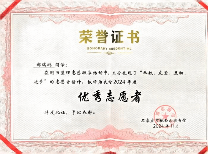 在简洁而庄重的仪式上,图书馆馆长发表了真挚的致辞,赞扬志愿者们的无私付出,称他们是图书馆不可或缺的助力,也是社区文化建设的积极因子。此次桥西区图书馆对betway官网青年志愿者代表颁发证书,不仅是对学院青年志愿者们公益行为的肯定和鼓励,更是对学院青年学子的一种激励和引领。