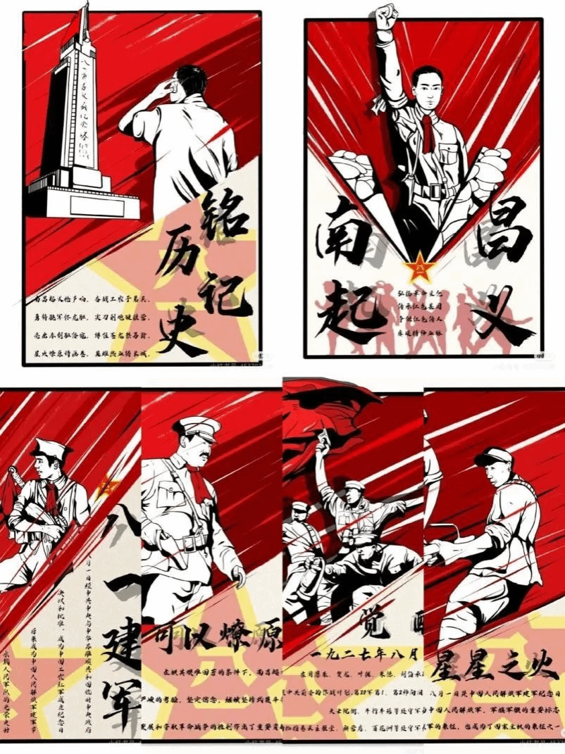 “爱祖国、爱家乡”篇——学生们利用红色革命因素,战士英勇作战形象,地方文化根据地等元素制作了很多优秀作品。