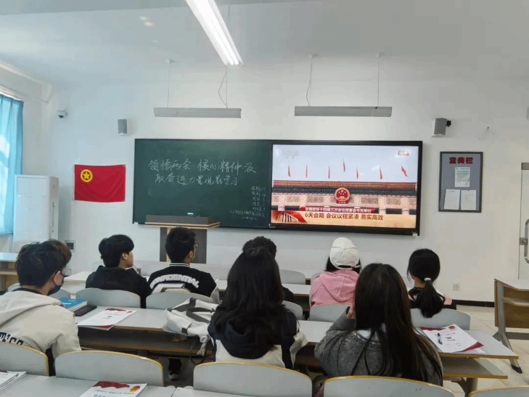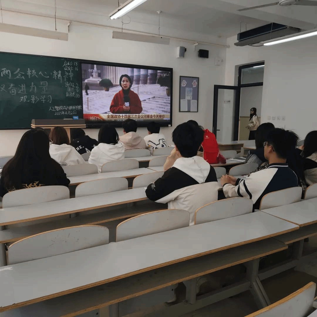 在观看过程中,大家全神贯注,被两会中传递出的国家发展理念和对人民的关怀深深吸引。不少学员还认真做着笔记,记录下关键信息和自己的思考感悟。观影结束后,学员们互相讨论,大家各抒己见,碰撞出思维的火花。