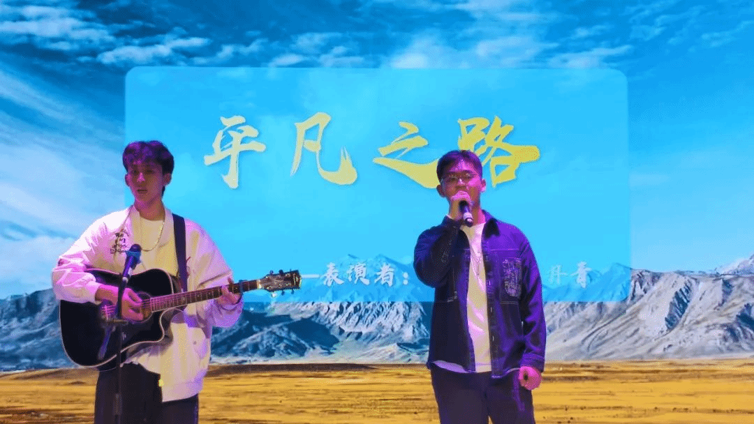 歌曲表演《平凡之路》:王锡晨和王丹青带来的歌曲,以吉他弹唱的形式,将平凡生活中的坚韧与梦想融入旋律之中,激起了大家对未来的无限憧憬和奋斗的决心。