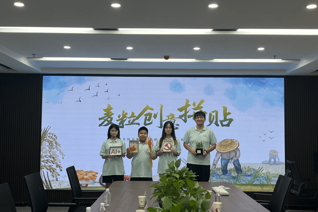在实践活动的尾声,团队成员体验了富有创意的“麦粒创意拼贴”活动。队员们亲手从麦穗上取下颗粒,感受其饱满的质地与自然的色泽。通过精心排列与粘贴,平凡的麦粒逐渐化作生动的图案。这不仅锻炼了他们的动手能力和艺术审美,更让他们在专注与耐心之中,深刻体会到“粒粒皆辛苦”的内涵,感受到每一颗粮食背后凝结的劳动价值,并认识到即使是寻常的农作物,也能通过创意焕发出新的生命力与美感。