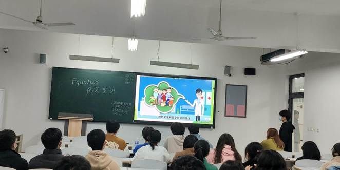 主讲员向学生讲述“预防艾滋病是全社会的责任”