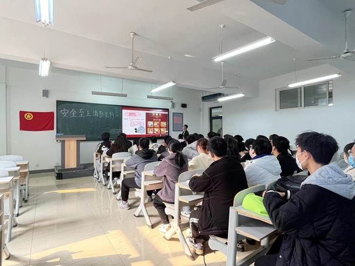此次班会由各班团支书主持并主讲,各班委辅助进行。首先,由各班团支书阐述有关消防安全事故案例背后所隐藏的安全隐患,学生深刻意识到学习并正确运用消防安全知识在危急关头对保障生命安全的重要性;紧接着学生回顾思考曾经学过的消防安全知识并交流学习,运用这些知识探讨如何预防校园中存在的安全隐患;之后,各班团支书带领学生认识安全标识并正确使用消防器材,掌握预防安全事故与发生灾情时的逃离和自救本领;最后,通过观看消防影片,学生明白消防安全事业的不易,并向在消防一线消防员们致敬。