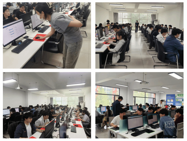 比赛当天,监考教师严格按照流程执行考务工作,8:00领取考务资料,8:30检查考生身份证和准考证,考生签字后有序入场,8:45考务人员向考生宣读赛前注意事项。9:00比赛正式开始后,考场秩序井然,考生专注答题。
