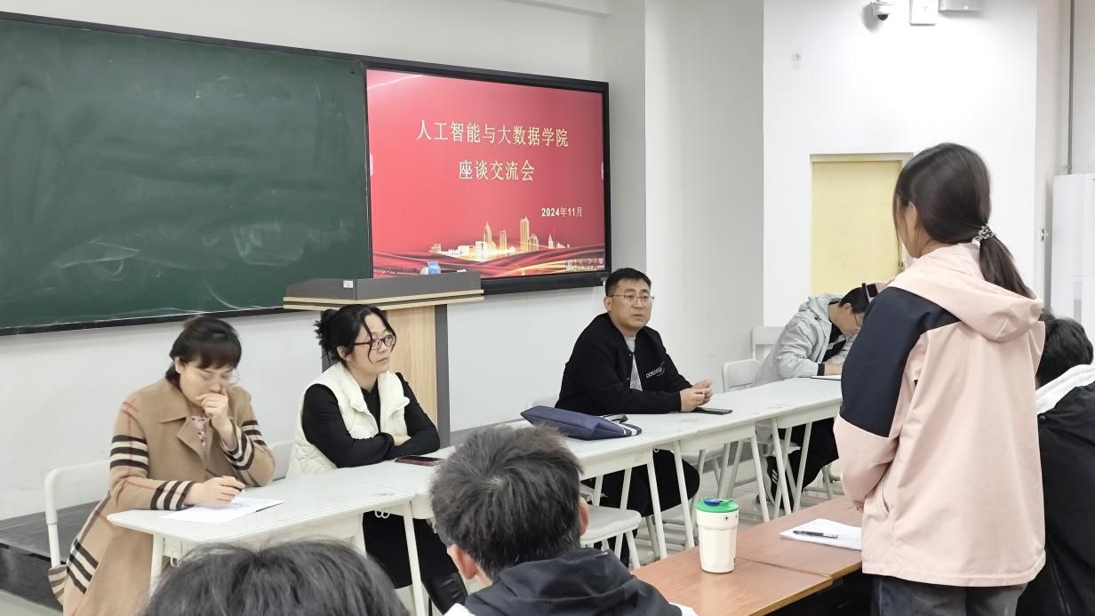 随后,学生代表们纷纷发言,反馈了他们在学习和生活中遇到的问题。针对课程安排紧凑、休息时间不足的问题,郝老师提出排课表时需要考虑教师时间、学生时间以及教室时间,同时思政课需要排在五点前,下学期会尽量避免这种问题。同时尹院长表示学院将结合学生的实际情况,对课程安排进行合理调整,以确保学生的学习效果和身心健康。针对个别机房、教室故障、网络故障的问题,郝老师提出学生可以及时跟任课教师或者机房管理老师反馈,老师会协助解决。针对四个智慧教室的桌椅问题、智慧大屏较暗的问题,郝老师表示会把问题向上反馈给予解决。同时如果有教学设施损坏,学生可以给后勤中心打电话或反馈给范老师、导员,学院会尽快解决问题。