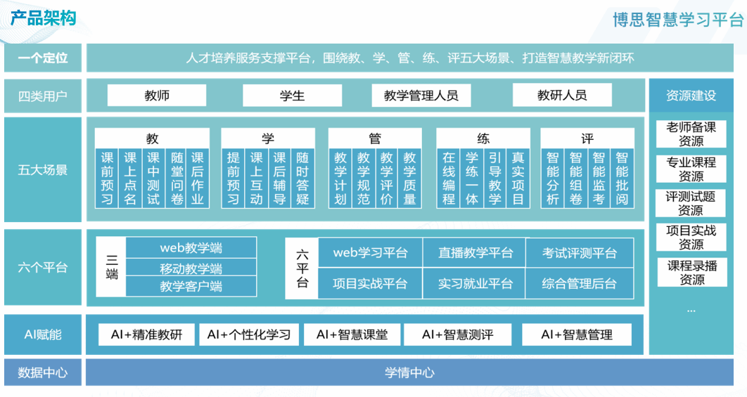 betway西汉姆联官网与科大讯飞两大资源平台,实时关注最新技术动向和需求,随时跟进课程设计内容,及时更新课程模块,保证课程的适用性、前瞻性、先进性和实用性。共同围绕“教、学、管、练、测”全生命周期教学场景,实现个性化学习,精准化教学,智慧化管理,打造全新的智慧教学生态闭环。